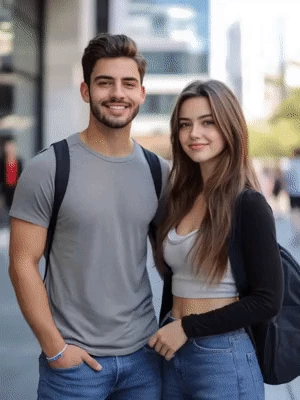 Please upload two images share the same aspect ratio and feature only one person in each image. Or upload one image that contains two people.